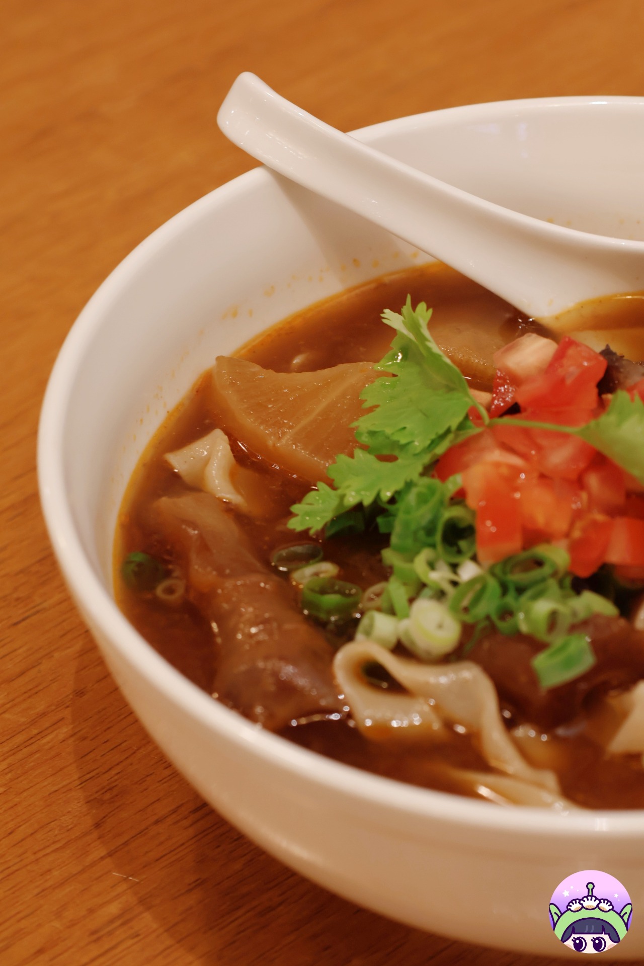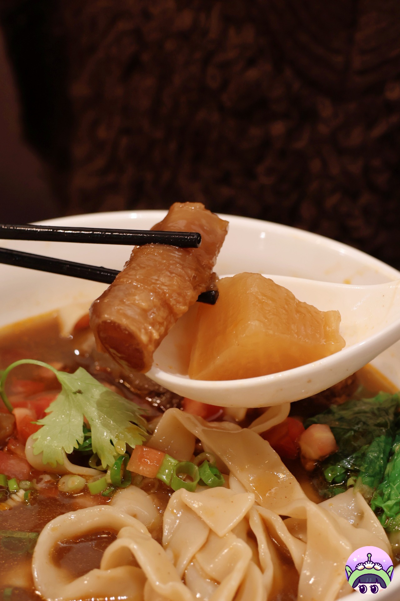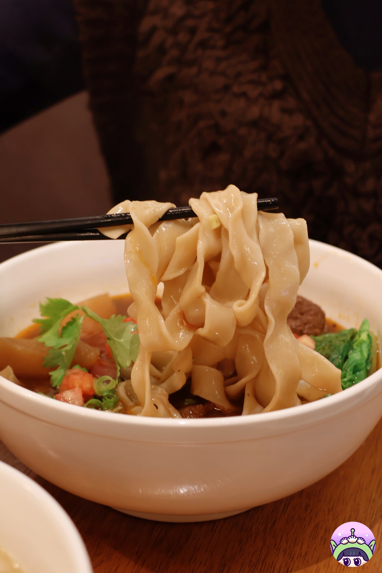 手工家常寬麵,Q彈且帶有嚼勁,每一口都能完整吸附濃郁湯頭。