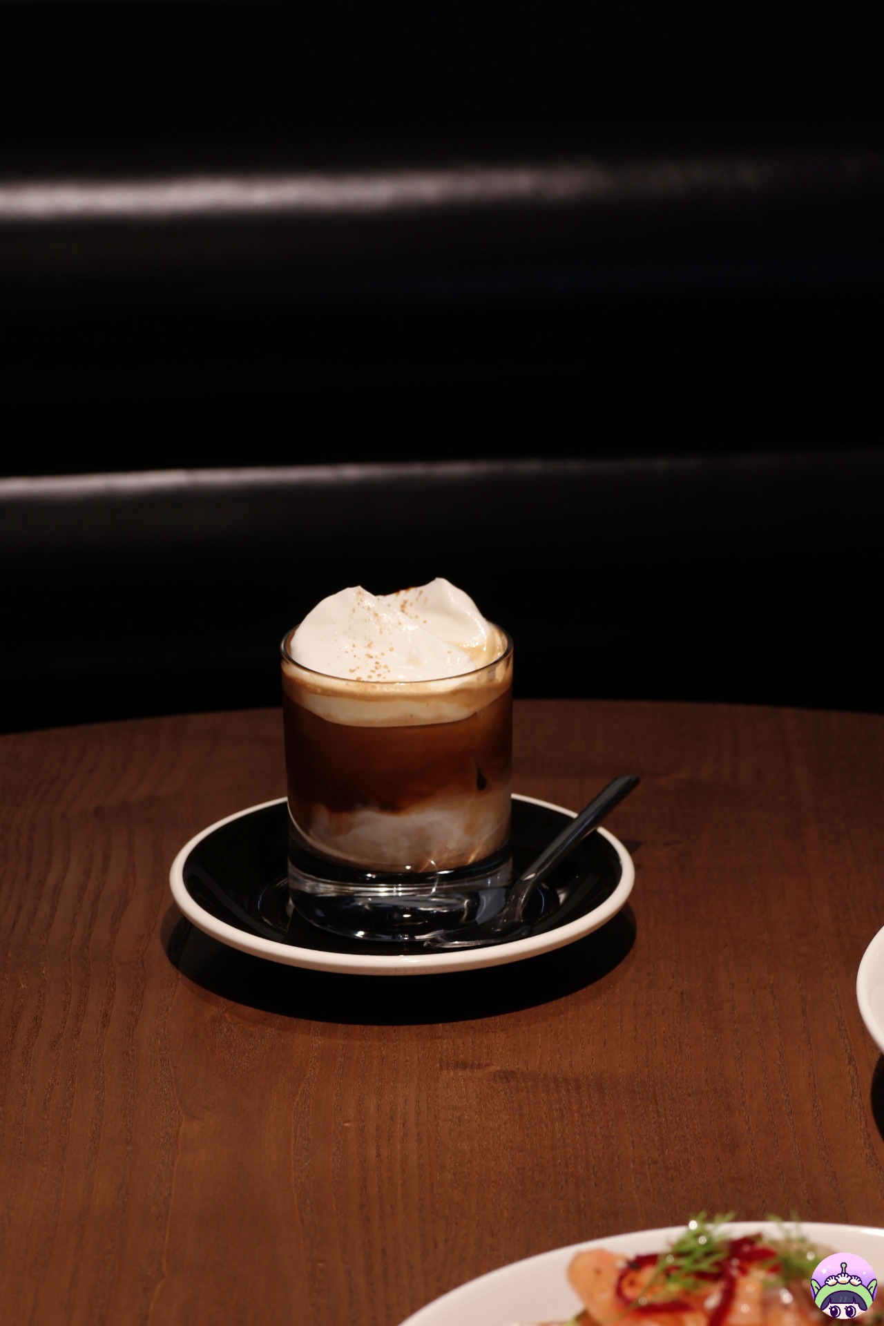 飲品部分鮮奶油咖啡,奶油細緻綿密,入口滑順。黑可可焙茶椰奶是台北限定,黑可可與焙茶的苦甜,混搭椰奶的清香,味道也好喝。