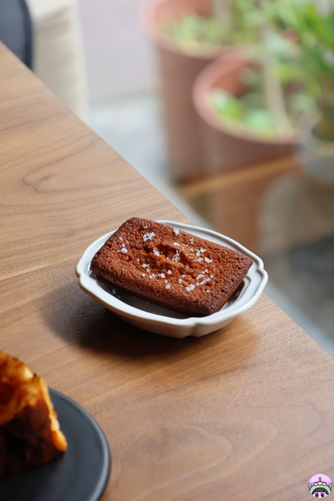鹽之花費南雪外層烤得很有厚度且帶脆感,奶油香氣迷人,最棒的是鹽之花提味,微鹹讓甜味變得更高級!