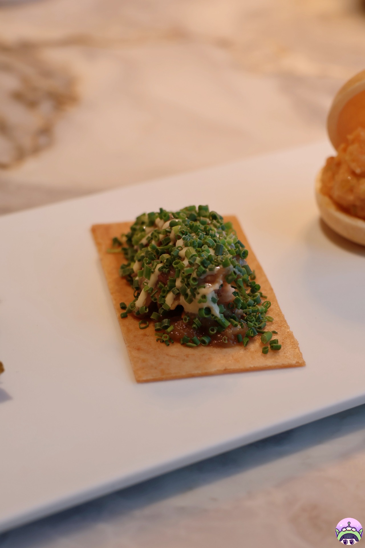 「是拉差鮮蝦雞尾酒最中餅」鹹香內餡與酥脆最中餅的創意組合,層次感滿分。