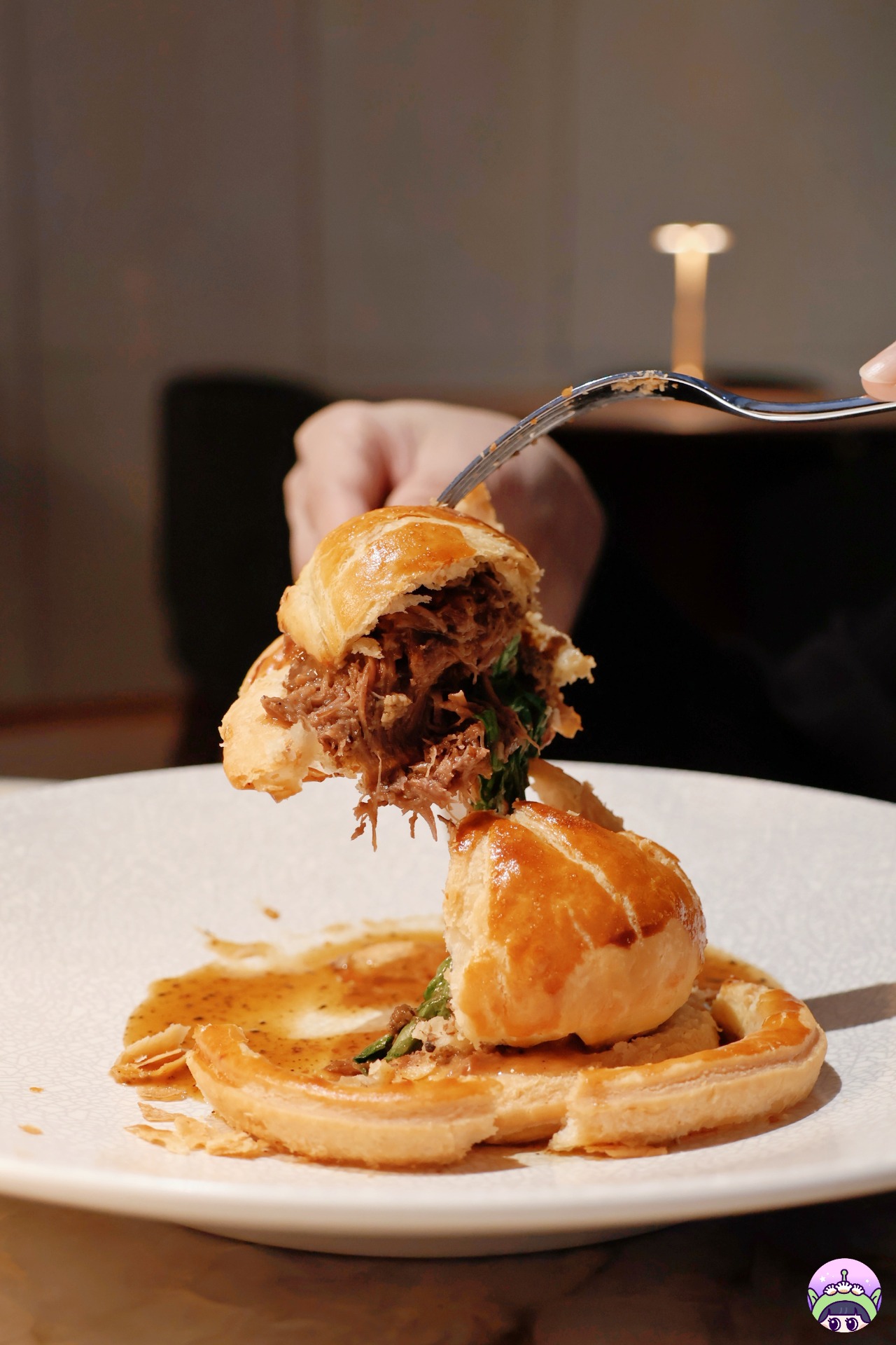 手撕牛威靈頓酥皮恰到好處,淋上紅酒燉牛肉醬,香氣非常迷人。